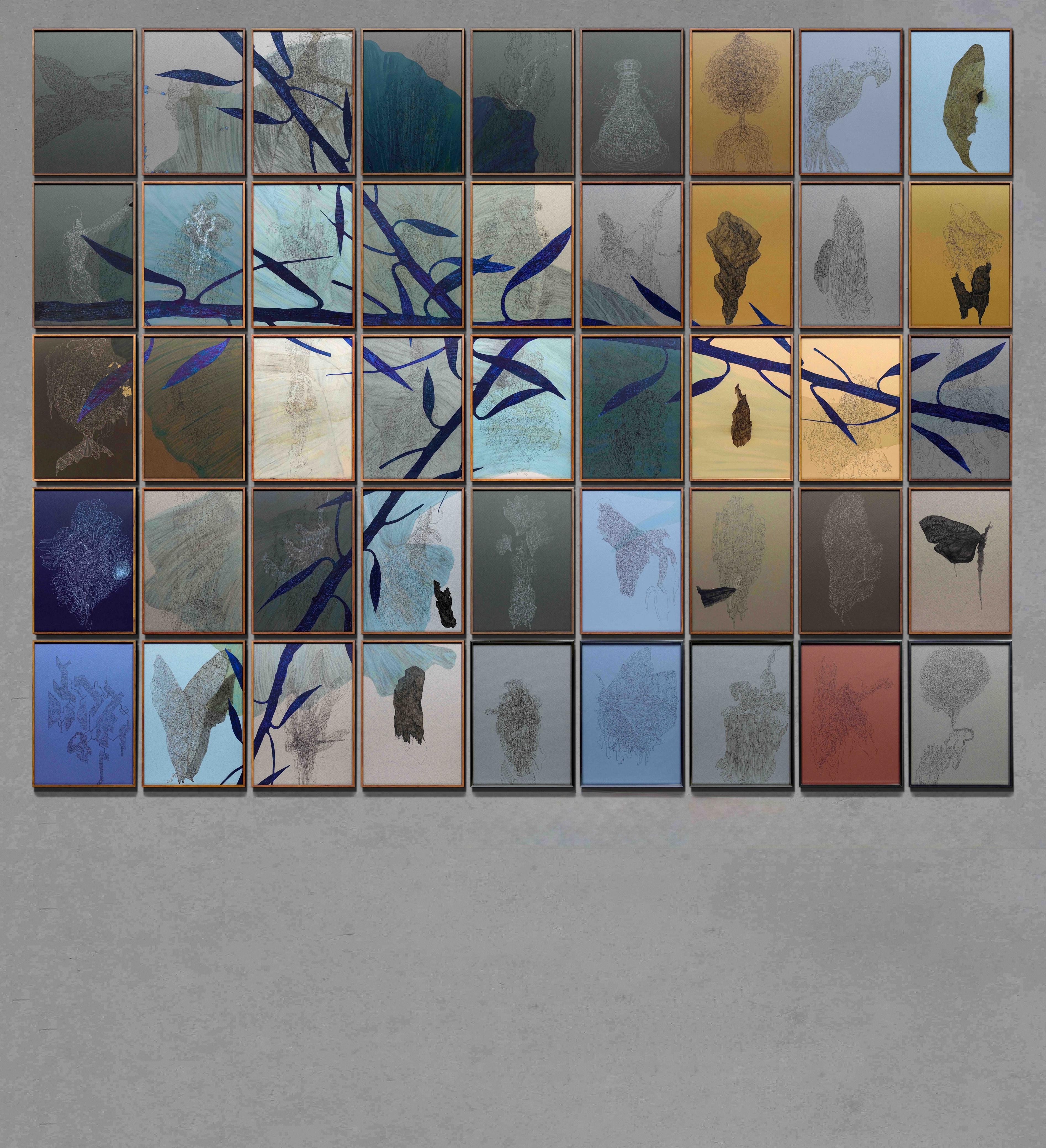 Drawing on the past and the present, Sunil Padwal’s work reflects on the unsettling identity of contemporary urban life. The senses are mobilized as much as memory, and the artist intervenes by combining antique frames with abstract forms and architectural imagery. There is a preoccupation with showcasing, and his work draws on a life-long intrigue with smaller details of interior spaces. By kindling a sensorium of flea-markets in the gallery context, Padwal blurs the lines between what is actual, what is made and what is found.